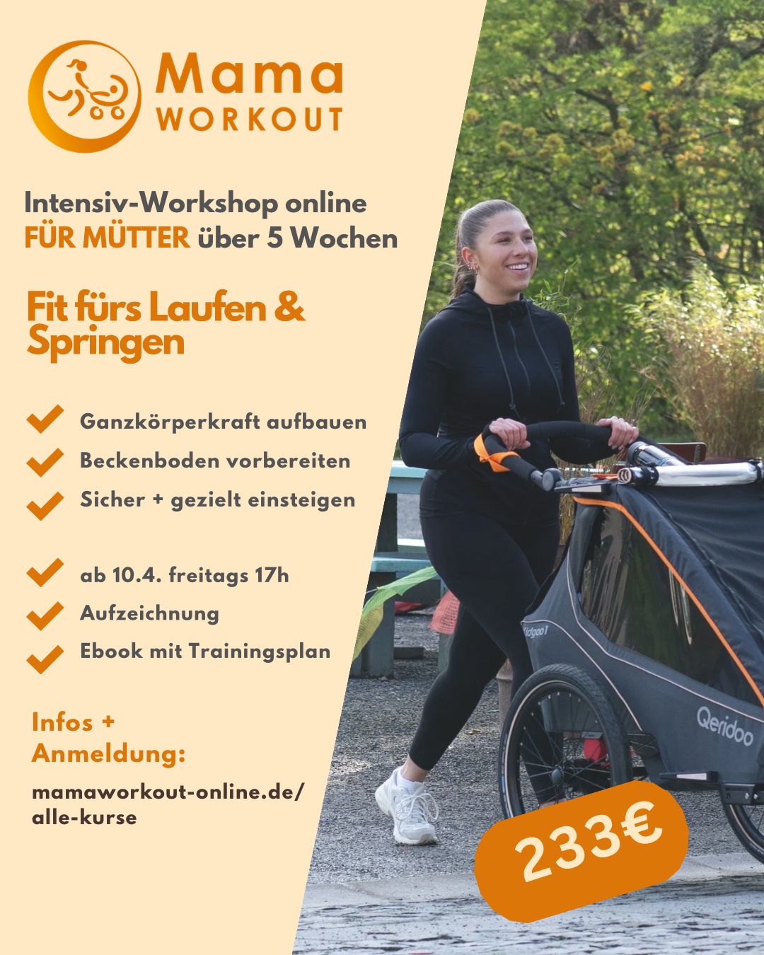 Am 10.4. startet der nächste MamaWORKOUT Intensiv-Workshop “Fit für’s Laufen und Springen nach der Geburt”